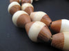 These beautiful multi-tone brown and white bicone beads are handcrafted in Tanzania. The unique brown and white color is derived from natural ebony wood which has been meticulously inlaid with cow bone across the center of the bead and polished to near perfection. These beads are actually surprisingly lightweight. Each bead is unique and a little bit different. A few beads may show minor blemishes. Individual beads measure approximately 28mm long by 20mm diameter and are strung on a sisal. Long strands measure over 30 inches. Shape and coloration may vary slightly from photo.
