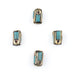 This Nepali beads are made by designing a brass core, and then inlaying it with turquoise and coral stone. Each bead measures approximately 13 x 8mm, with a hole size of 1mm. Sold in sets of four beads.