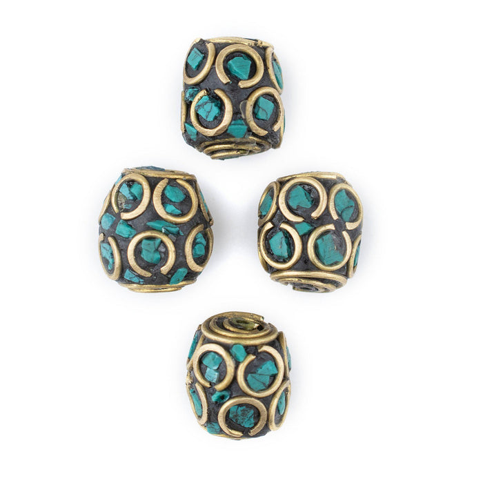 Inlaid Nepali Cylindrical Brass Beads (12mm, Set of 4)