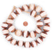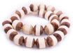These unusual African beads are made by inlaying white bone into a wooden base. Each bead is individually handmade and unique. Use them for jewelry or large enough for home decor. Individual beads will range in size between 20-30mm and are strung on traditional raffia fiber. Strand length is fairly large!