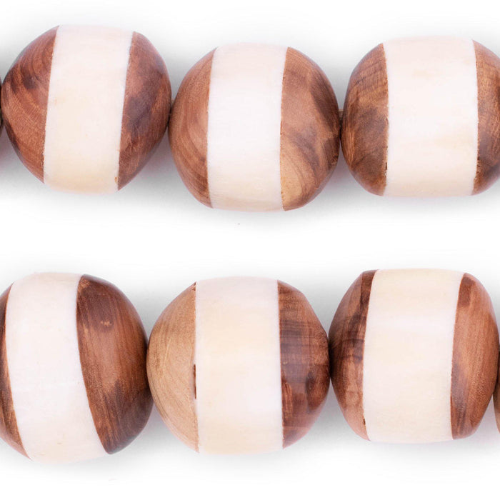Inlaid Wood and Bone Tanzanian Sphere Beads (24mm)