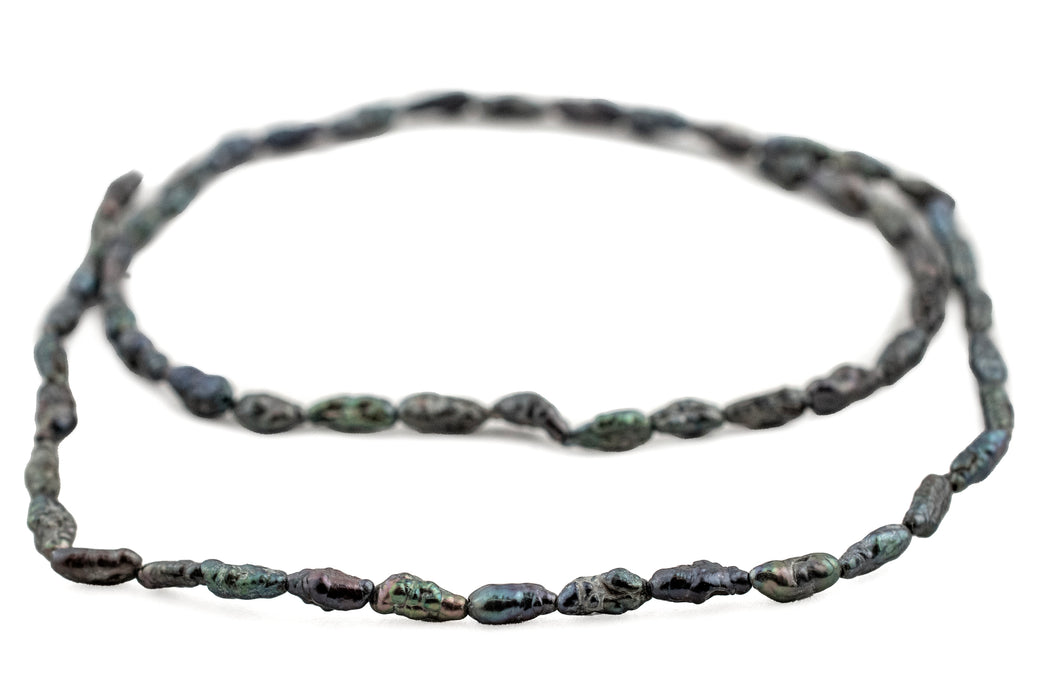 Iridescent Blue Vintage Japanese Rice Pearl Beads (3mm)