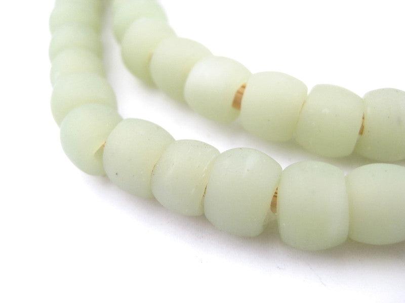 Take a look at these beautiful jade glass padre beads. Padre beads have been traded in African as early as the late 1800 early 1900's. The beads are approximately 9mm in diameter. Some strands may not have raffia as shown in photo. Unusual color!