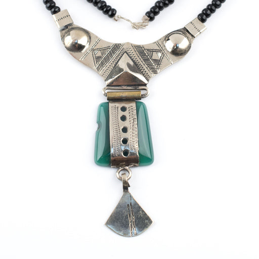 This beautiful pendant was crafted in Niger, West Africa by the Tuareg people. The Tuareg are a nomadic desert tribe that inhabits a broad expanse of territory stretching from the edges of the Saharan desert of Morocco to the north as far as Burkina Faso in the south. Each pendant features traditional designs, measures 29x20mm in size and is fitted with a natural stone. This pendant has been strung with beads and clasp. Wear the necklace 'as-is' or remove pendant and include as a centerpiece in your own personal design!