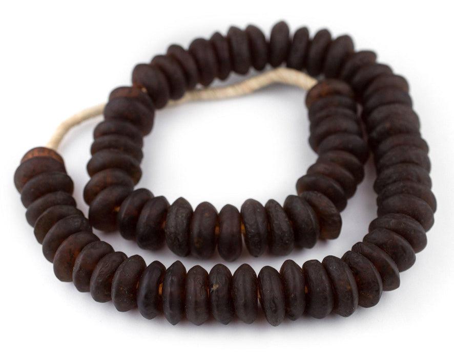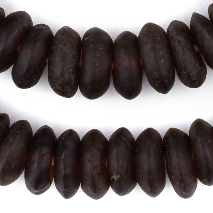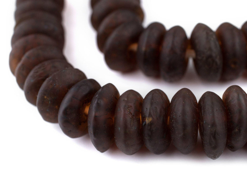 Jumbo Amber Black Swirl Rondelle Recycled Glass Beads
