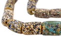 Take a look at this hard to find strand of jumbo-sized "End of Day Beads" from Ghana in West Africa. Beads such as this are made by recycling older broken beads and fusing the glass into a new form. Look carefully and you will see bits of Venetian Millefiori and other interesting finds in the detail of these beads. Each bead measures approximately 20-32 x 14-20mm, and the strand measures approximately 30 inches in length (including string). Each strand is unique and may vary slightly from photo. You will receive the exact strand pictured. These are an exceptionally large size!