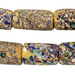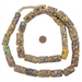 Take a look at this hard to find strand of jumbo-sized "End of Day Beads" from Ghana in West Africa. Beads such as this are made by recycling older broken beads and fusing the glass into a new form. Look carefully and you will see bits of Venetian Millefiori and other interesting finds in the detail of these beads. Each bead measures approximately 20-32 x 14-20mm, and the strand measures approximately 30 inches in length (including string). Each strand is unique and may vary slightly from photo. You will receive the exact strand pictured. These are an exceptionally large size!