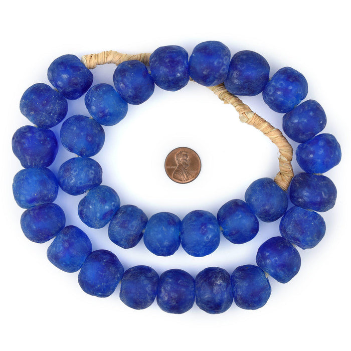 Take a look at this exceptionally large strand of jumbo-sized recycled glass beads. Large beads such as these are hard to find and even harder to find in good condition. The journey from Africa can sometimes be unkind to such large beads! This strand is sure to make an impression wherever it goes. Use these beads as centerpieces for special jewelry, as adornments for interior design, or even as a wall hanging to decorate your favorite room. You will receive a 28" strand with approximately 30 beads. Each strand is unique and may vary slightly from strand pictured.