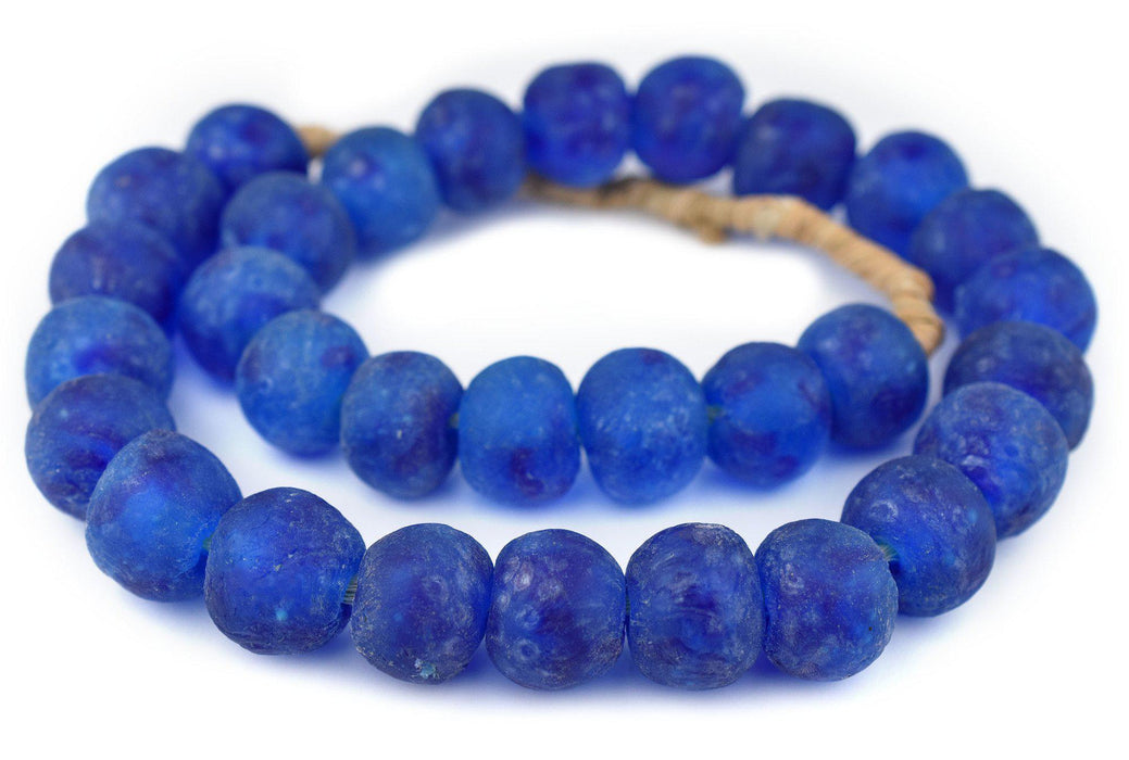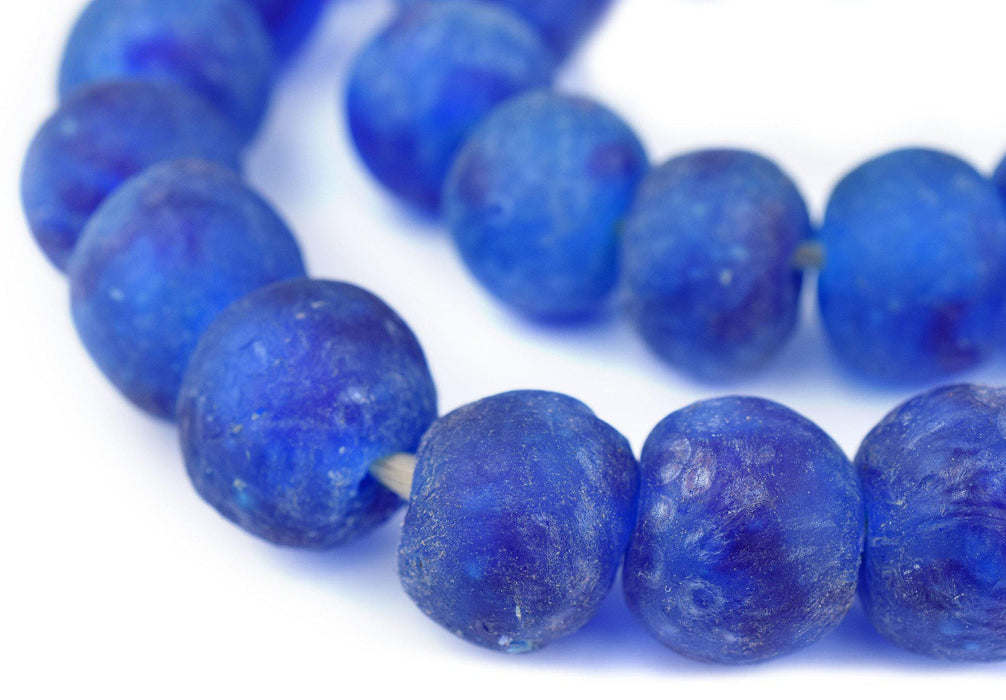 Recycled glass beads are a type of indigenously produced African bead from Ghana West Africa. These special beads are made using an old method that has been used for centuries. The glass itself is derived from a variety of recycled sources including old beverage and medicine bottles. The procedure for making the beads consists of a number of steps whereby powdered glass is poured into molds of clay and baked in a specialized oven. These beads are produced in large part by the Krobo tribe and are environmentally friendly. Because of the size of these beads, it is not uncommon for a strand to have a few beads with internal fractures. Non-USA buyers, please note that a heavy-weight surcharge may apply for this item. Please inquire in advance if you would like to pre-confirm this fee.