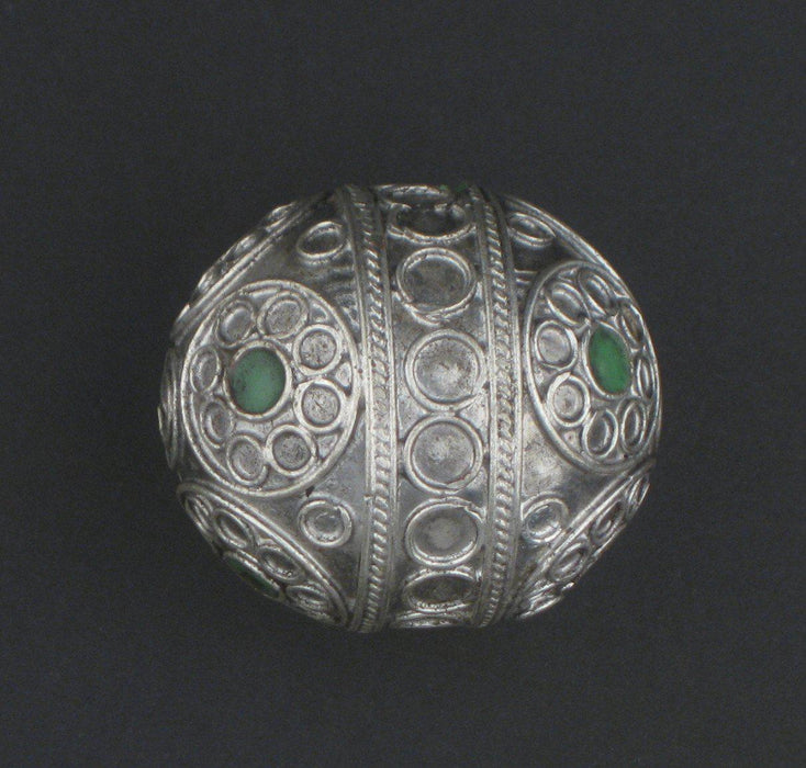 Jumbo Artisanal Enamel Inlaid Emerald Green Berber Bead Pendant