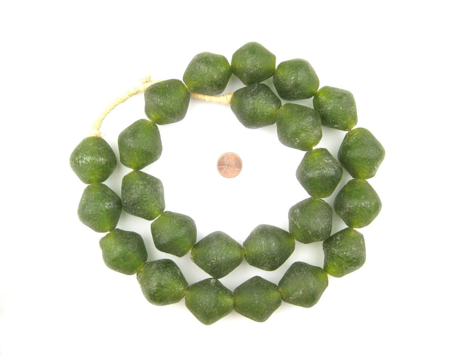 Jumbo Asparagus Green Bicone Recycled Glass Beads (34mm)