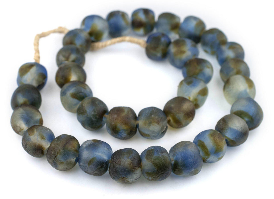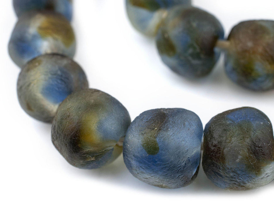 Jumbo Blue Brown Swirl Recycled Glass Beads (23mm)