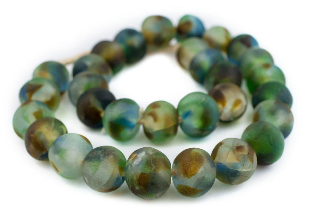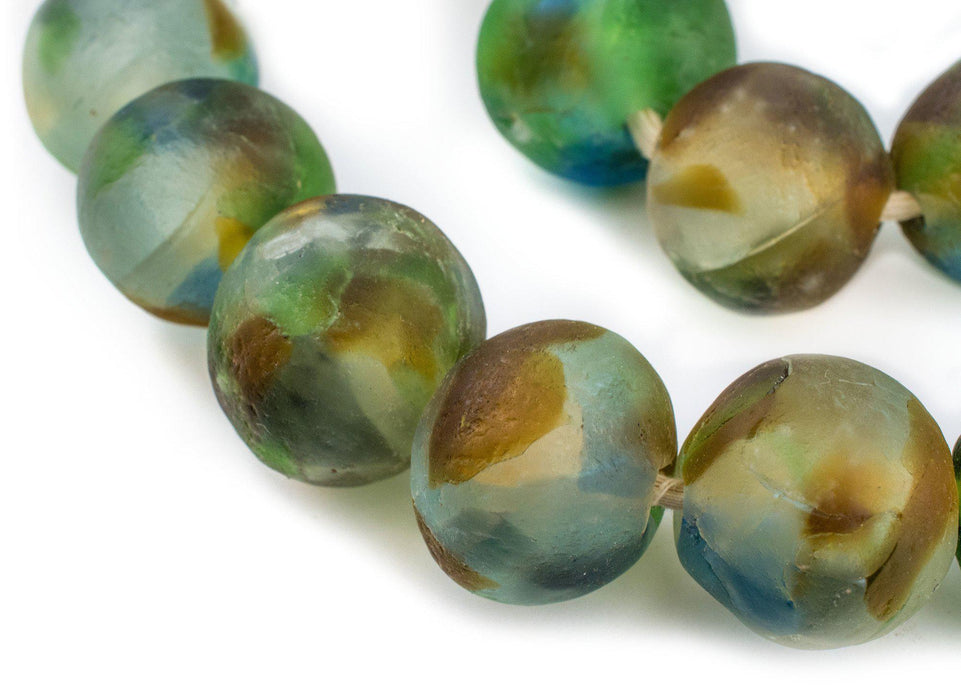 Jumbo Blue Green Brown Swirl Recycled Glass Beads (25mm)