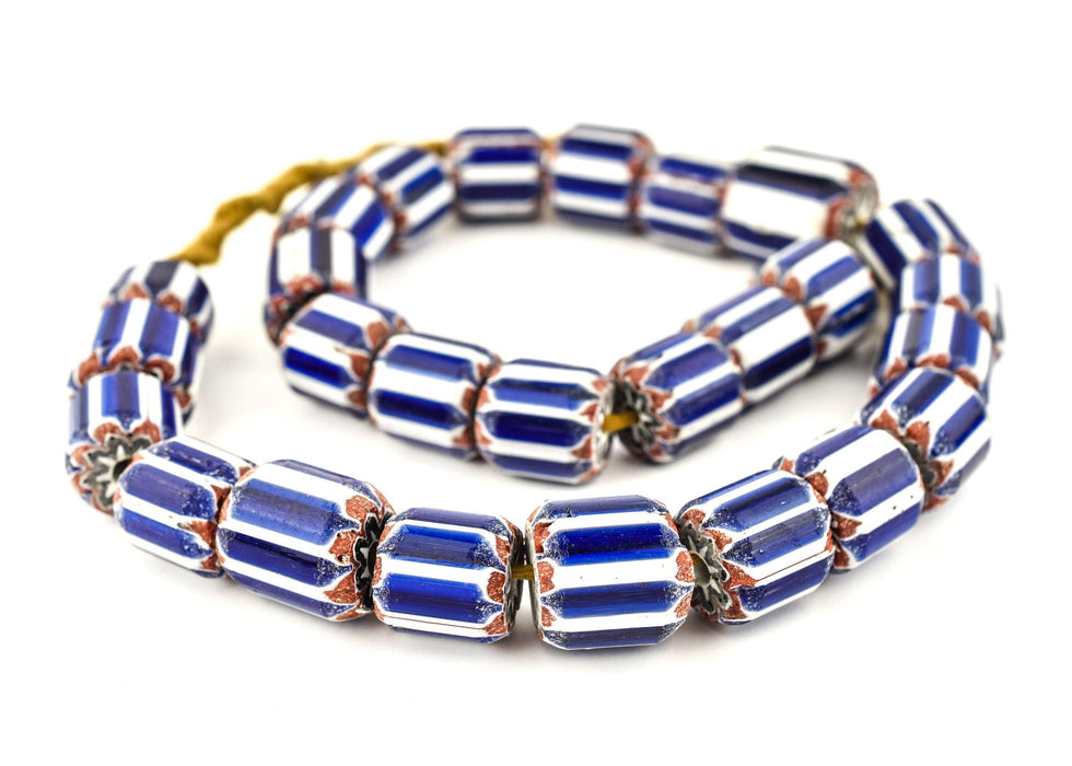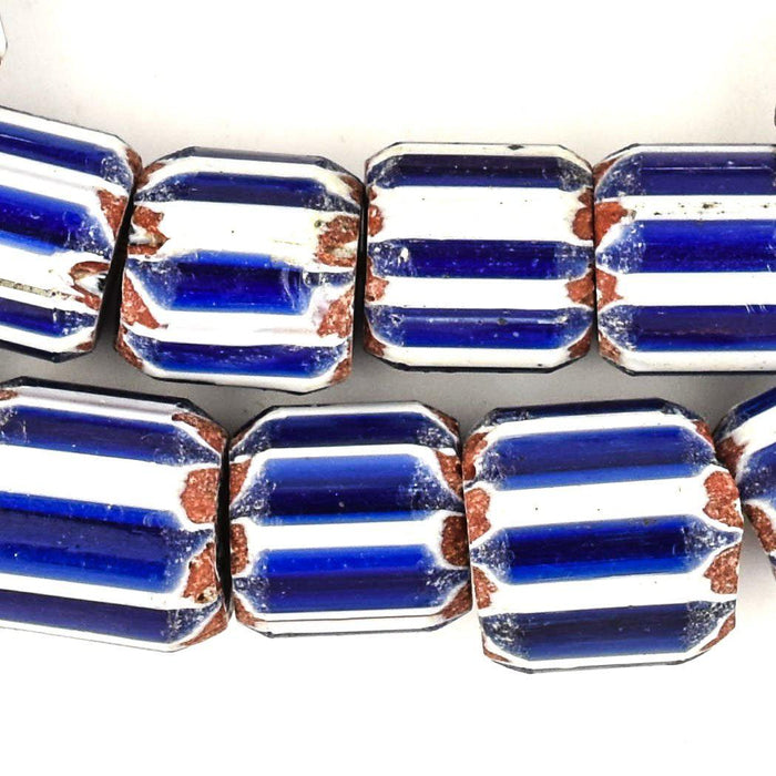 Jumbo Blue & White Nepal Chevron Beads (16x18mm)