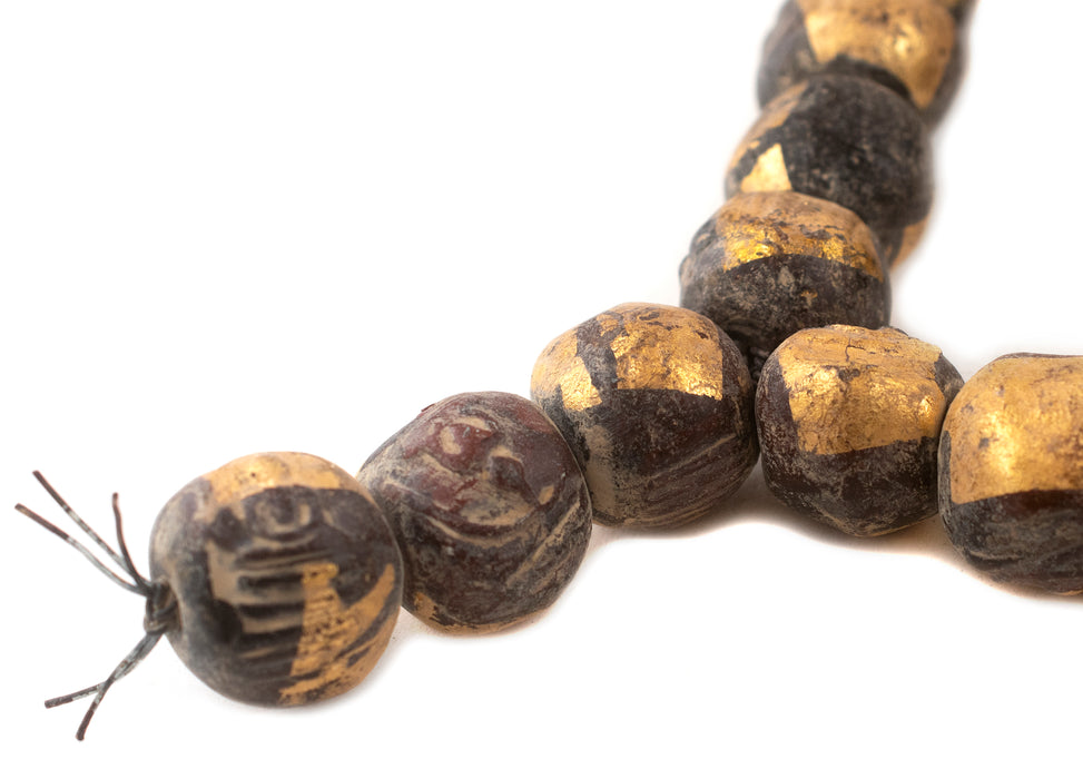 Jumbo Clay Buddha Mala Beads with Gold Leaf (22mm)