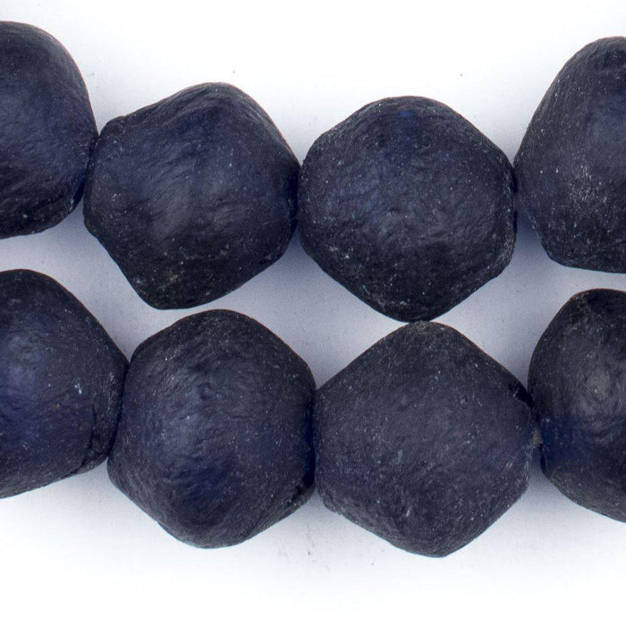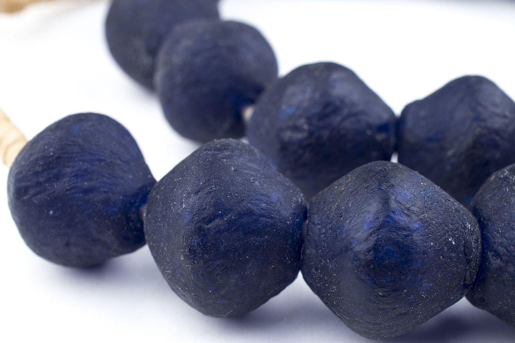 Recycled glass beads are a type of indigenously produced African bead from Ghana West Africa. These special beads are made using an old method that has been used for centuries. The glass itself is derived from a variety of recycled sources including old beverage and medicine bottles. The procedure for making the beads consists of a number of steps whereby powdered glass is poured into molds of clay and baked in a specialized oven. These beads are produced in large part by the Krobo tribe and are environmentally friendly. Because of the size of these beads, it is not uncommon for a strand to have a few beads with internal fractures. Non-USA buyers, please note that a heavy-weight surcharge may apply for this item. Please inquire in advance if you would like to pre-confirm this fee.