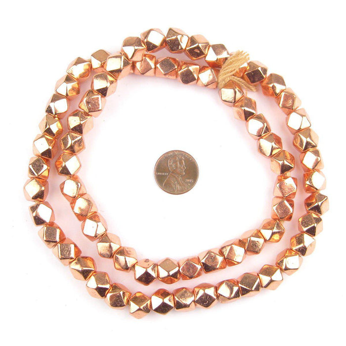 Take a look at this great strand of copper beads fashioned in a faceted shape. These beads are an unusually large size of our popular diamond cut beads. Each strand is 24" inches long with approximately 65 beads measuring 9 x 9-10mm diameter. These great beads are highly versatile and may be used as spacers or accents in your unique designs. A great addition to your beading toolkit!