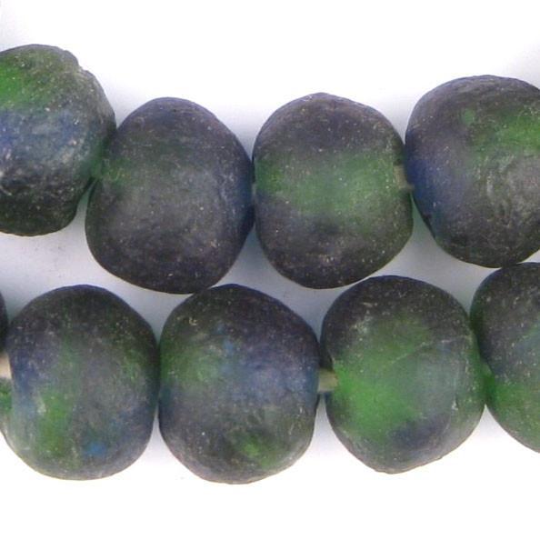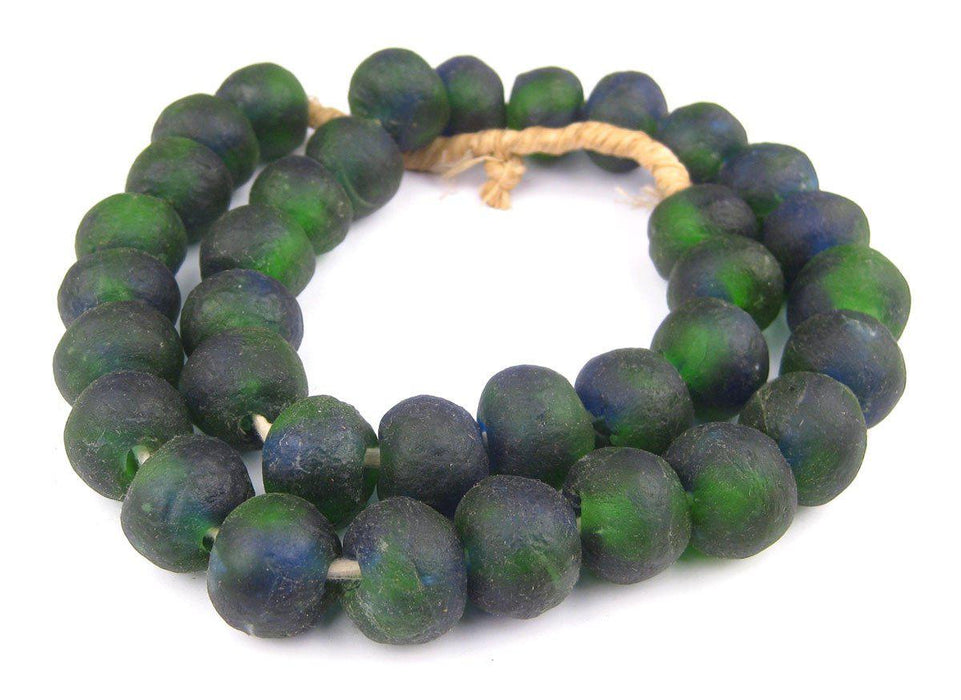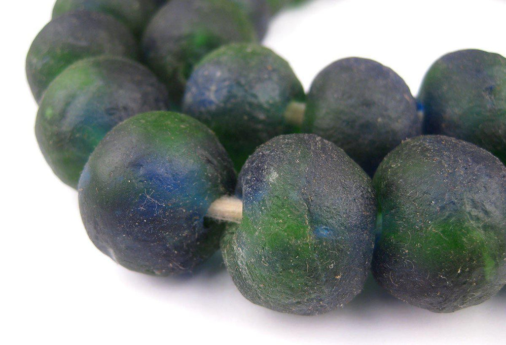 Jumbo Blue Green Swirl Recycled Glass Beads (26mm)