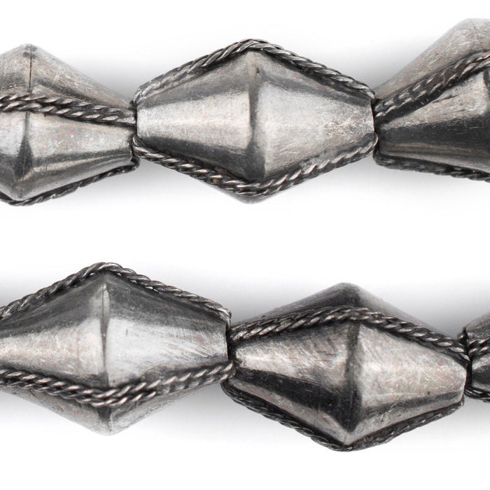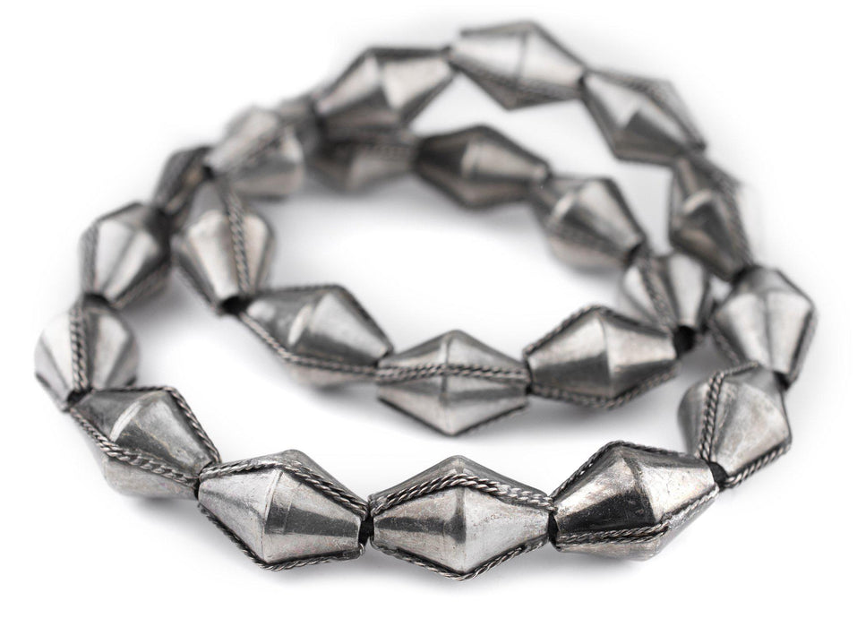 Jumbo Ethiopian Wired Silver Bicone Beads (28x20mm)