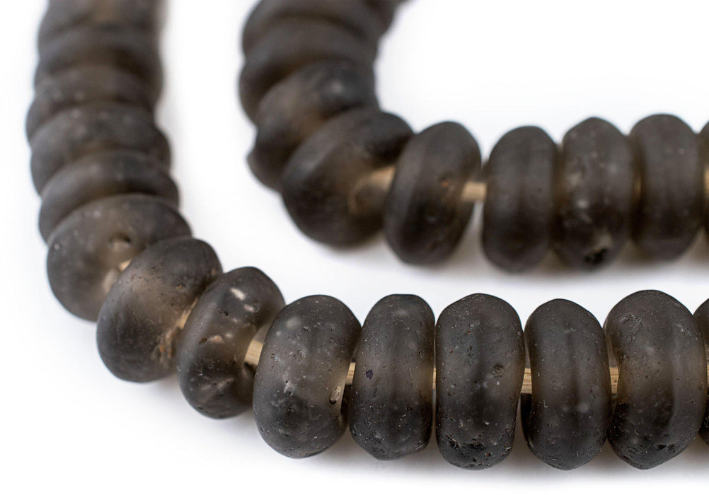 Jumbo Groundhog Grey Rondelle Recycled Glass Beads (20mm)