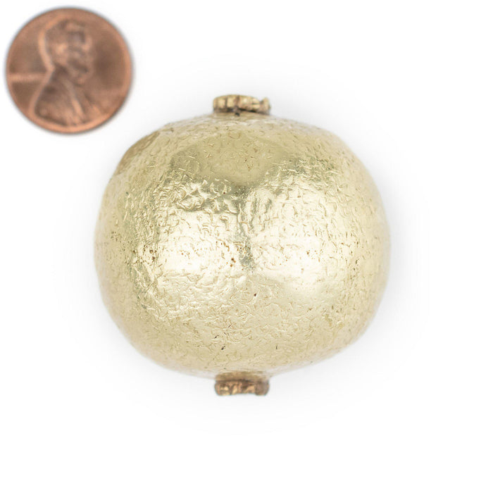 This beautiful brass bead is handcrafted in the highest of quality. Made using durable metal, its thick outer layer and hollow center make it a great center-piece bead for any necklace or ornamental design. Reminiscent of East African metals, this style will surely add some character to your next project! Each bead measures approximately 42 x 40-41mm with a hole size of approximately 5mm. You will receive one bead per purchase. Get yours today!