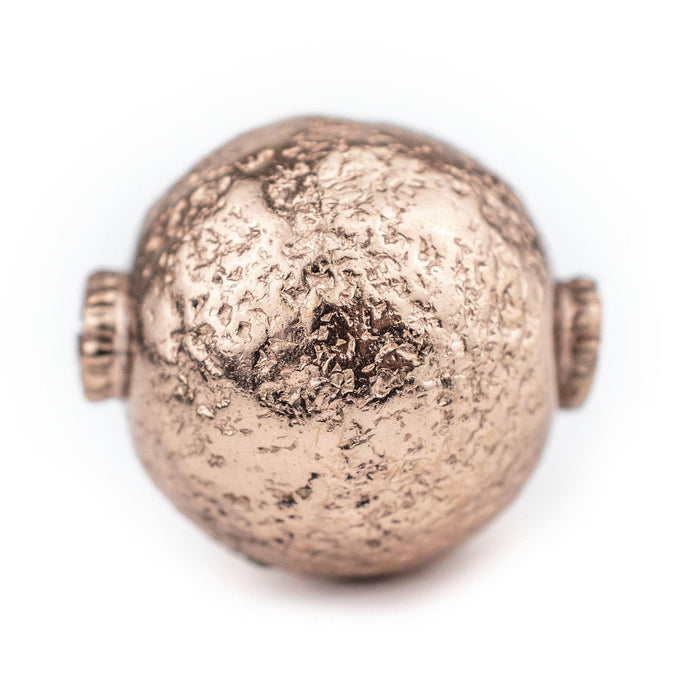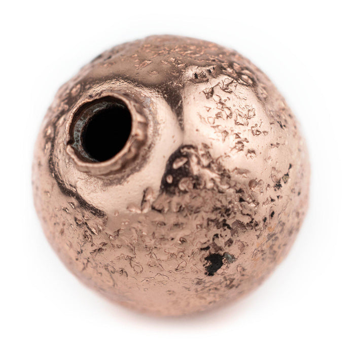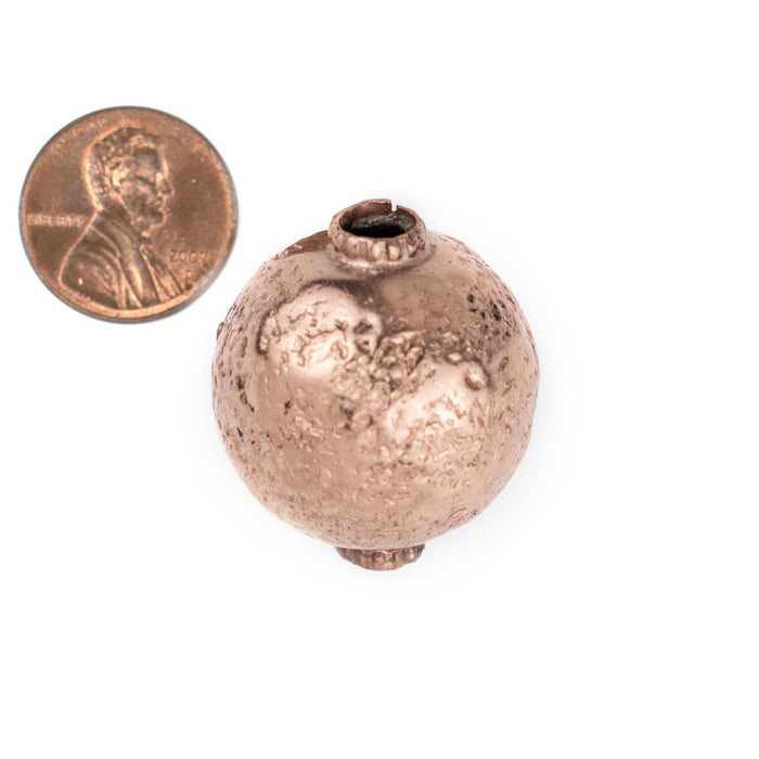 This beautiful copper bead is handcrafted in the highest of quality. Made using durable metal, its thick outer layer and hollow center make it a great center-piece bead for any necklace or ornamental design. Reminiscent of East African metals, this style will surely add some character to your next project! Each bead measures approximately 31 x 26-27mm with a hole size of approximately 5mm. You will receive one bead per purchase. Get yours today! This artisan product is made using premium copper electroplating over brass to make these copper finish customer favorites.