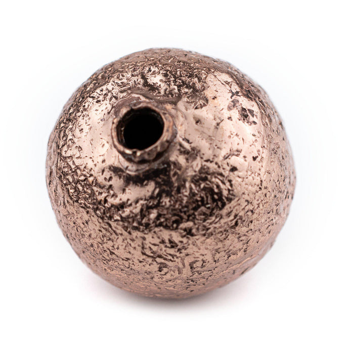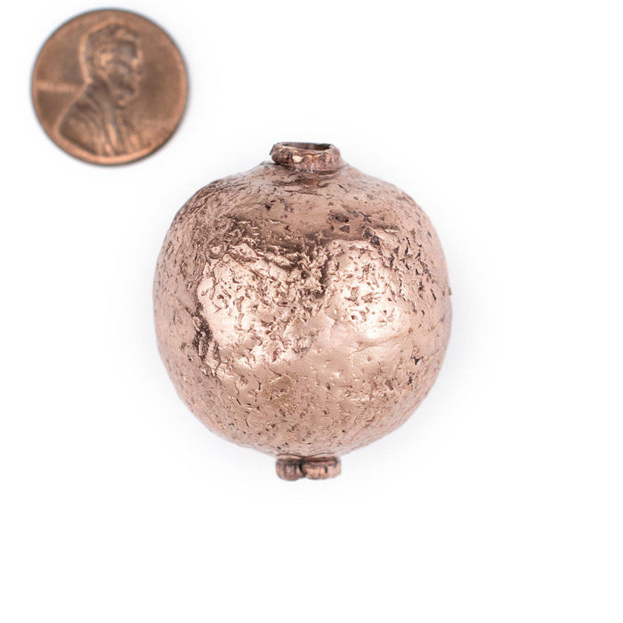 This beautiful copper bead is handcrafted in the highest of quality. Made using durable metal, its thick outer layer and hollow center make it a great center-piece bead for any necklace or ornamental design. Reminiscent of East African metals, this style will surely add some character to your next project! Each bead measures approximately 40 x 34mm with a hole size of approximately 5mm. You will receive one bead per purchase. Get yours today! This artisan product is made using premium copper electroplating over brass to make these copper finish customer favorites.