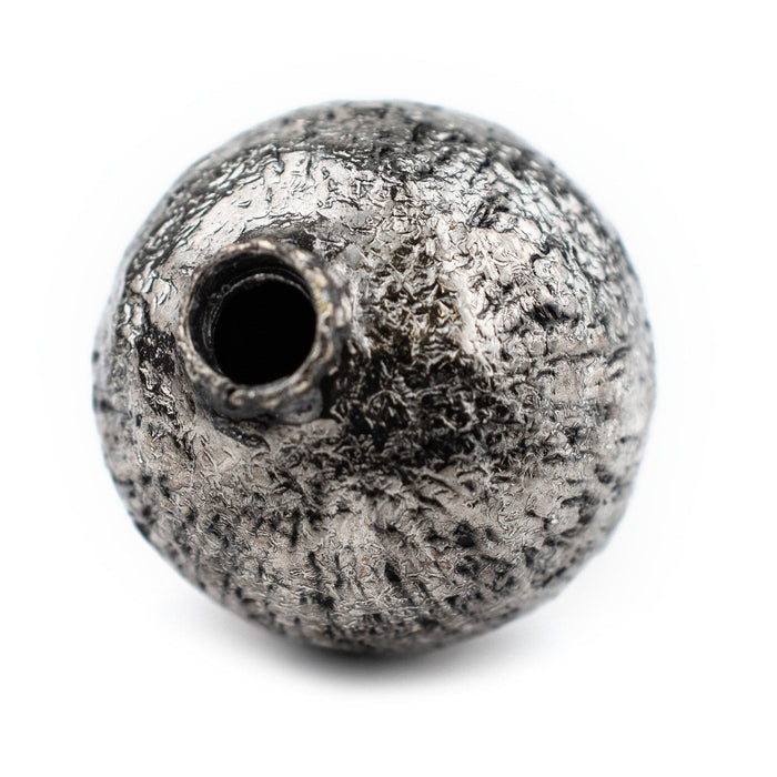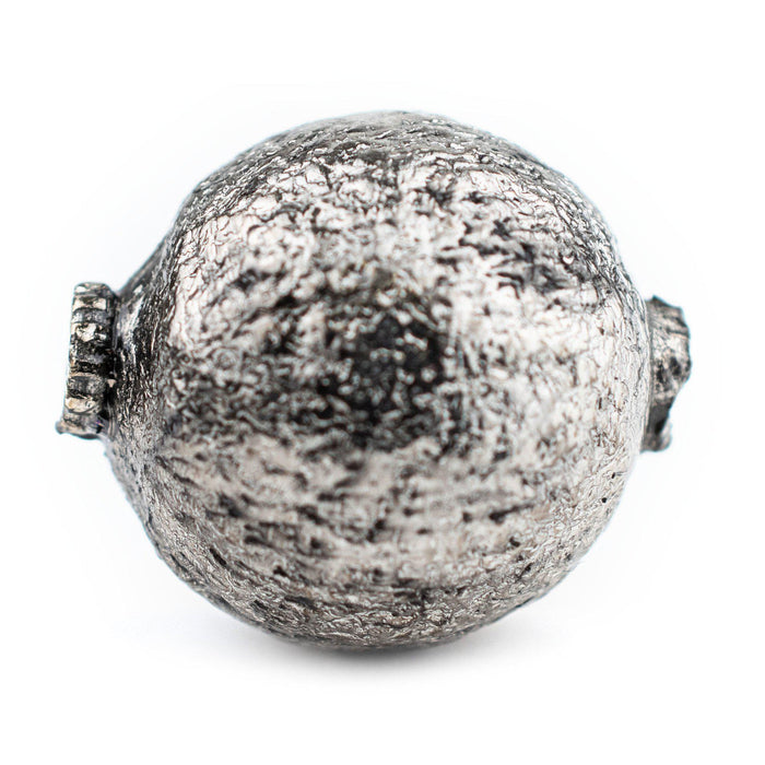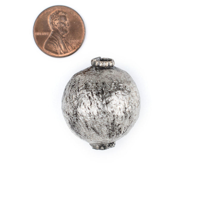 This beautiful silver bead is handcrafted in the highest of quality. Made using durable metal, its thick outer layer and hollow center make it a great center-piece bead for any necklace or ornamental design. Reminiscent of East African metals, this style will surely add some character to your next project! Each bead measures approximately 31 x 26-27mm with a hole size of approximately 5mm. You will receive one bead per purchase. Get yours today!