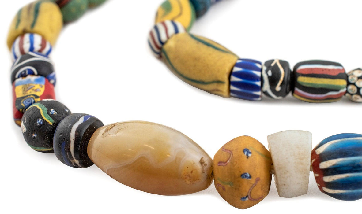 Looking for a truly unique strand of antique mixed trade beads? Then look no further. This beautiful strand of old african trade beads contains a medley of hard to find beads, all in JUMBO SIZES. Enjoy King beads, eye beads, Chevron beads, and many other unusual varieties of old African Trade Beads. These beads are for the designer and collector alike. You will receive the exact strand pictured. All measurements are approximations. Some beads may show signs of age. These mixed beads are truly exceptional!