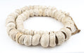 From the shores of West Africa, these large shell beads have a timeless and simple beauty. The natural matte finish of these shells gives them a rustic and authentic appeal. This long strand measures approximately 34". Individual beads measure approximately 10-23mm wide by 16-31mm diameter, with a hole size of 2-3mm. These would be ideal as decoration for your favorite room or table or may be used as a statement piece to grab some attention. This is an usually large strand that is much bigger than the others we received. Only one strand available so you will receive the exact strand pictured.