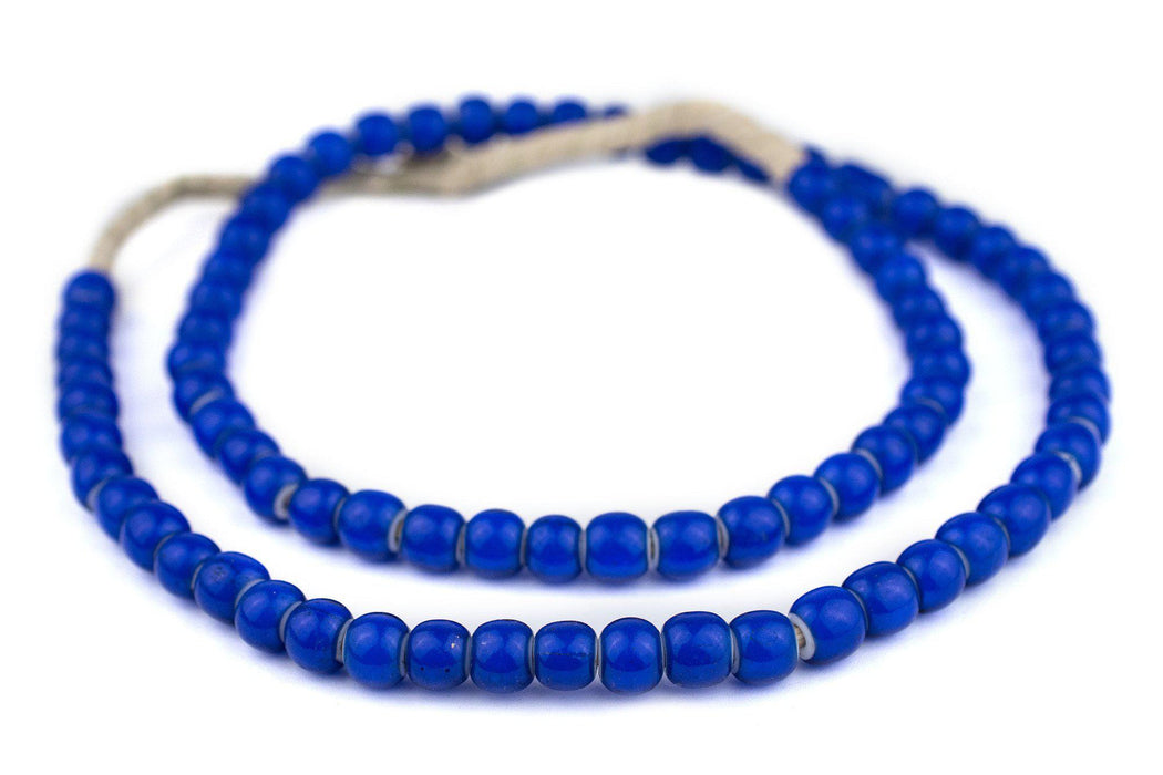 Admire this exceptional strand of Navy Blue White Heart beads in a hard to find 8mm diameter size. Bead such as this were made in Europe before being shipped to West Africa for use on the African continent. Each strand consists of approximately 75 beads measure 7-9mm wide and 7-8mm diameter. The large 2mm hole size makes these a versatile addition to your beading toolkit. Limited supply!