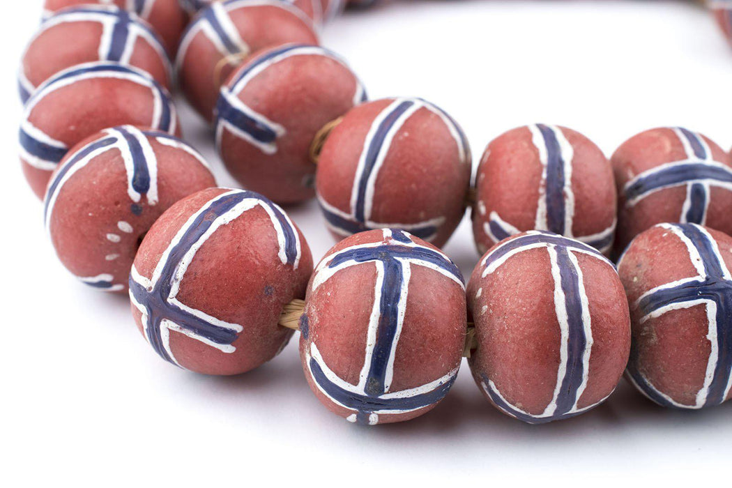 Admire these unique and unusually large painted glass beads made by artisans from the Krobo tribe in Ghana. These special beads work great as focal beads and centerpieces in necklaces and more. Each bead measures approximately 18-20 x 23mm, with hole size of 3mm. Strands are 29" long, with approximately 40 beads each. Limited supply available.