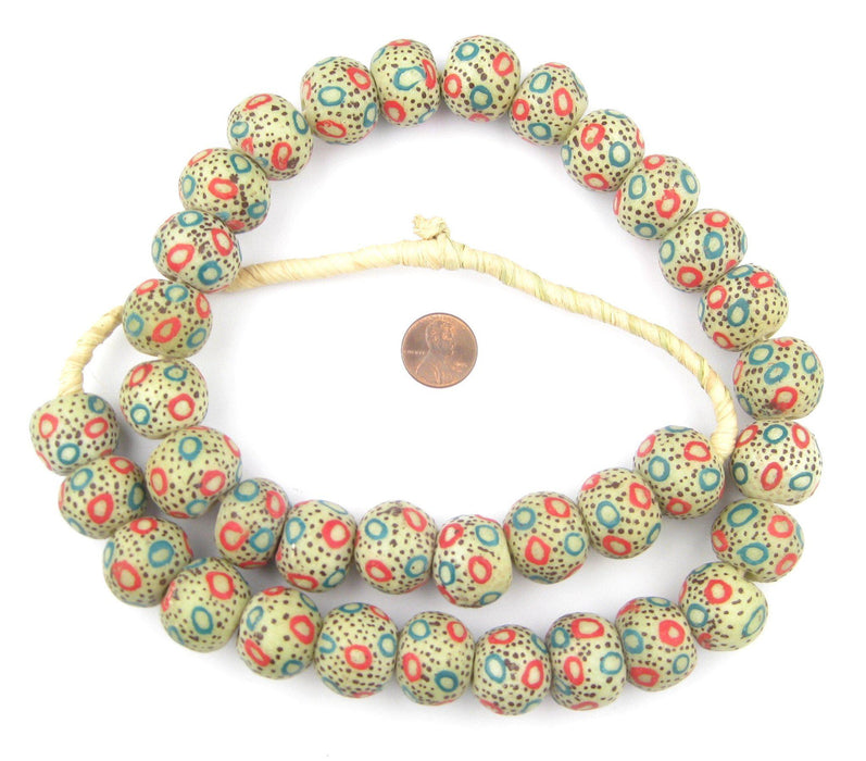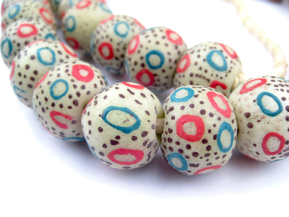 Jumbo Painted Krobo Glass Beads (Dotted White)