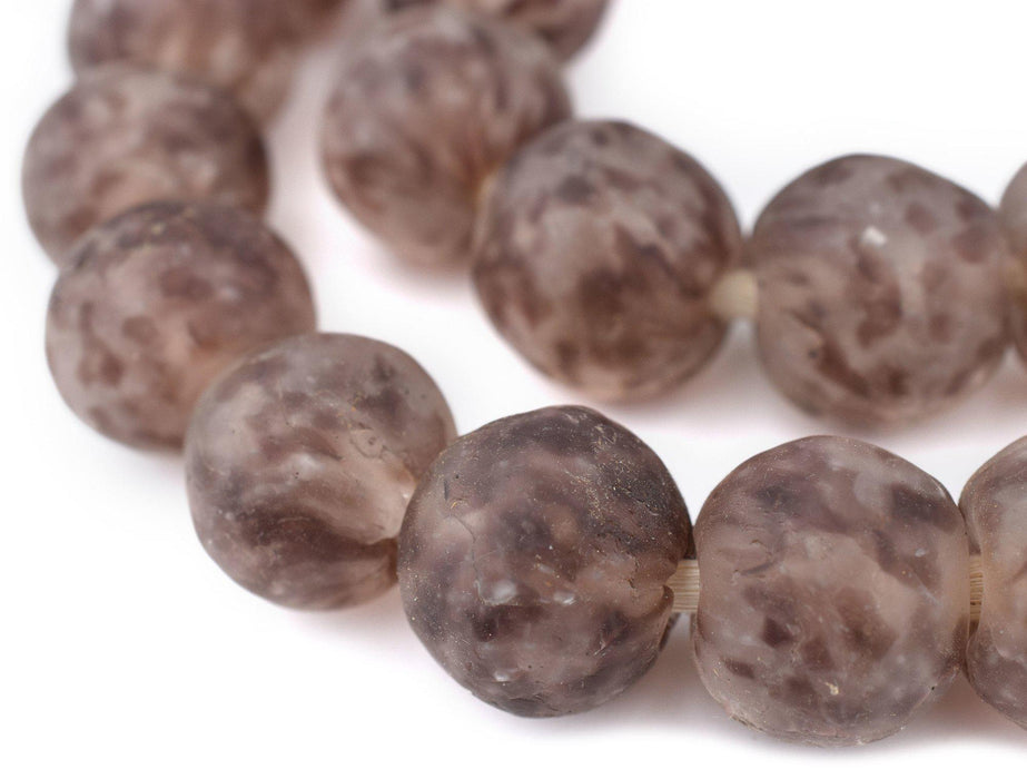 Recycled glass beads are a type of indigenously produced African bead from Ghana West Africa. These special beads are made using an old method that has been used for centuries. The glass itself is derived from a variety of recycled sources including old beverage and medicine bottles. The procedure for making the beads consists of a number of steps whereby powdered glass is poured into molds of clay and baked in a specialized oven. These beads are produced in large part by the Krobo tribe and are environmentally friendly. Because of the size of these beads, it is not uncommon for a strand to have a few beads with internal fractures. Non-USA buyers, please note that a heavy-weight surcharge may apply for this item. Please inquire in advance if you would like to pre-confirm this fee.