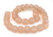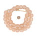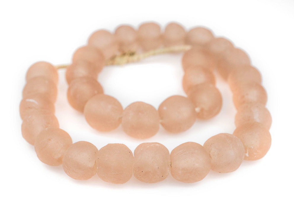 Recycled glass beads are a type of indigenously produced African bead from Ghana West Africa. These beautiful rose color recycled beads are made using an old method that has been used for centuries. The glass itself is derived from a variety of recycled sources including old beverage and medicine bottles. The procedure for making the beads consists of a number of steps whereby powdered glass is poured into molds of clay and baked in a specialized oven. These beads are produced in large part by the Krobo tribe and through recycling glass are environmentally friendly. Each strand is unique and color may vary slightly from photo.