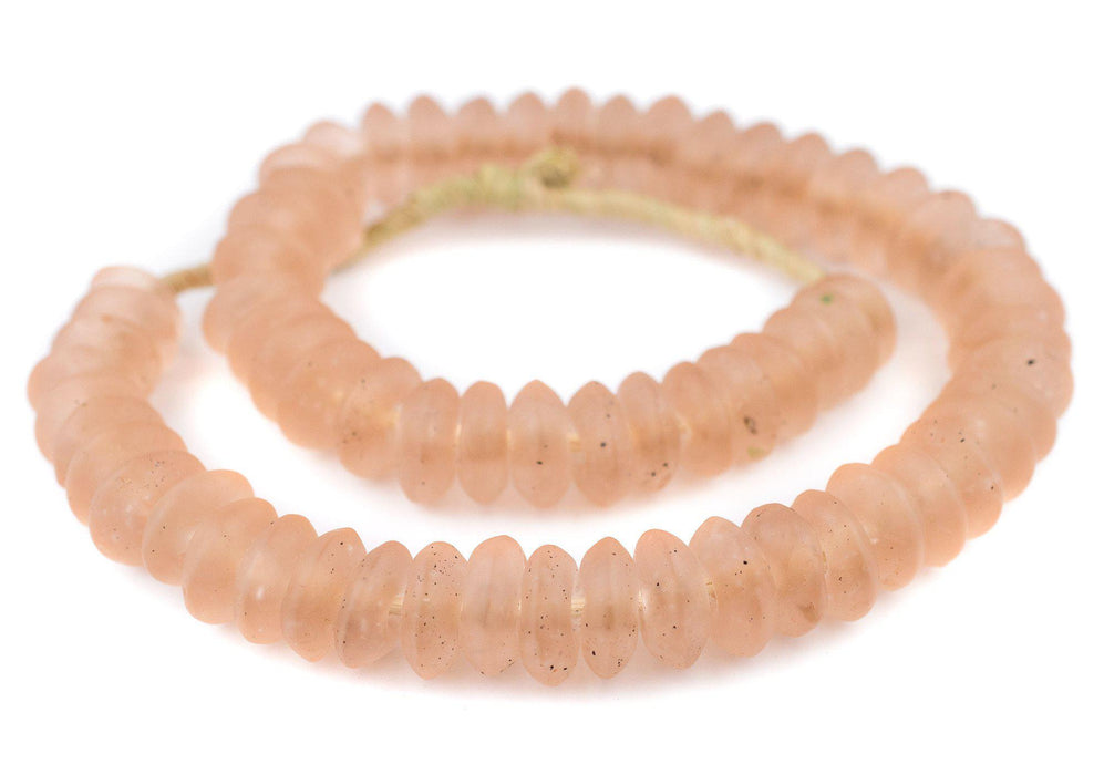 We love the captivating Rose shade of these Jumbo Rondelle Recycled Glass Beads. Oversized beads like this are perfect when you're trying to add a textured depth of color around the home when used in interior design projects. These beads also look great when incorporated in DIY jewelry designs. Each handmade strand is about 28". Each bead is approximately 7-8mm x 19-21mm with 3mm hole. Each strand is sold individually. Take home a strand for yourself today!