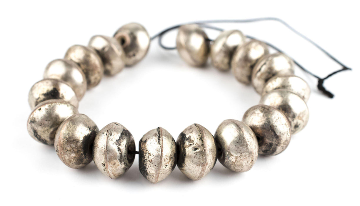 Jumbo Vintage Ethiopian White Metal Bicone Beads (15x21mm)