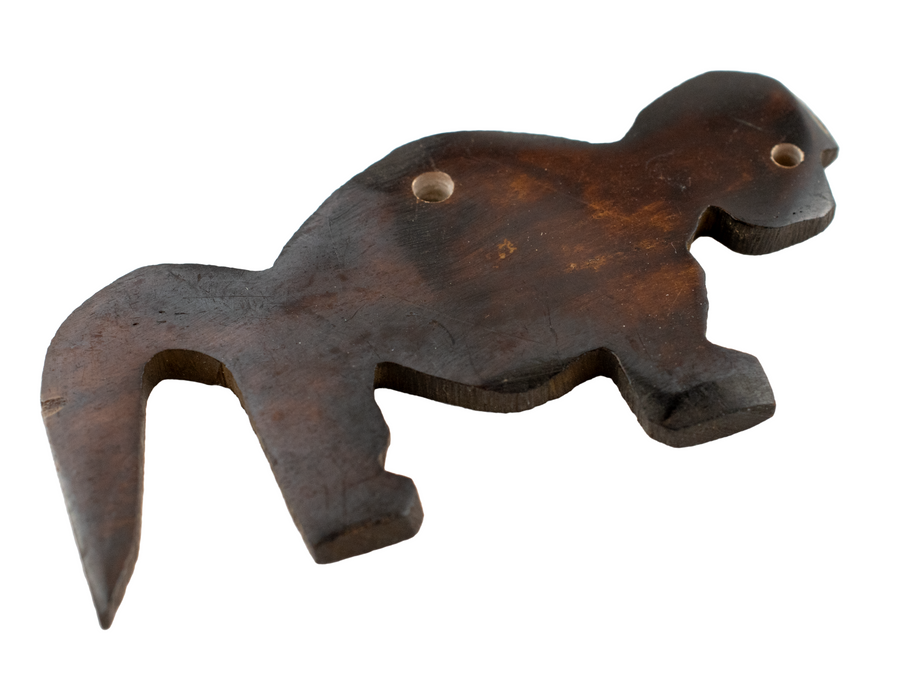 Batik bone animal pendant from Kenya in the shape of a wild jungle monkey. Each pendant measures 55-60mm by 25-27mm and 2-3mm thick. Pendant has one drill hole in back for stringing and a second drill to designate the eye. There may be some slight variation between each pendant. These are handmade and each unique!