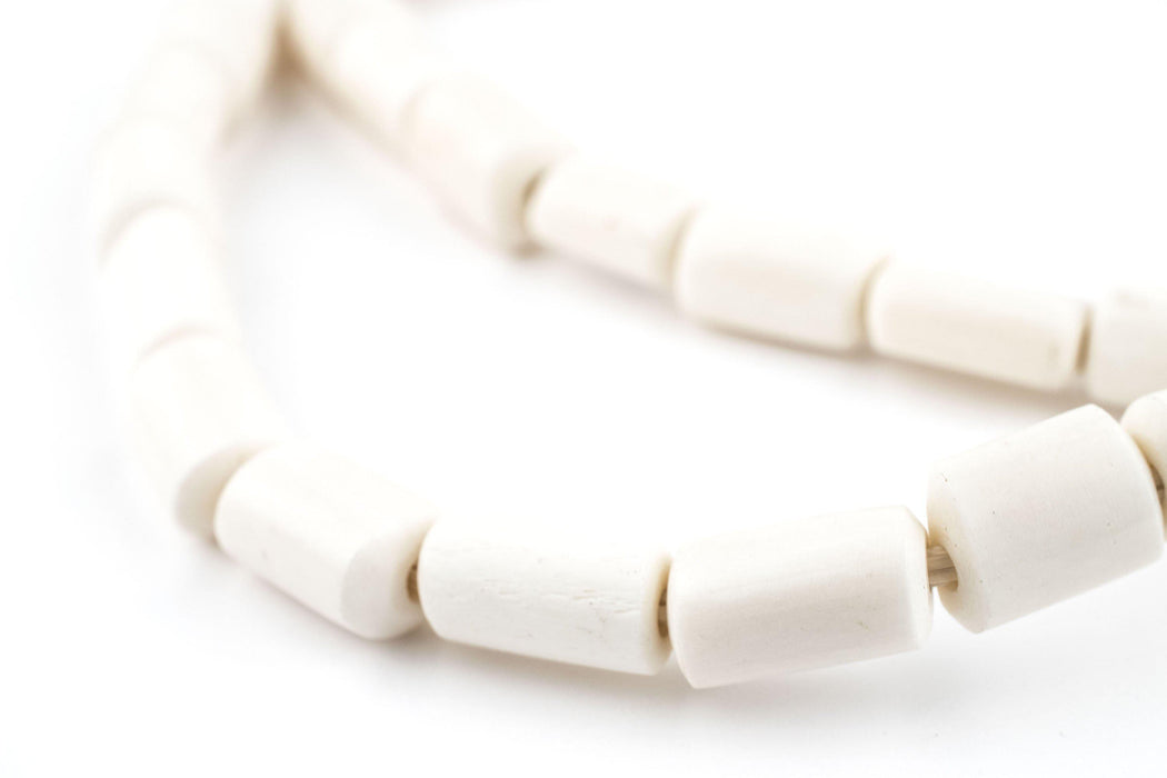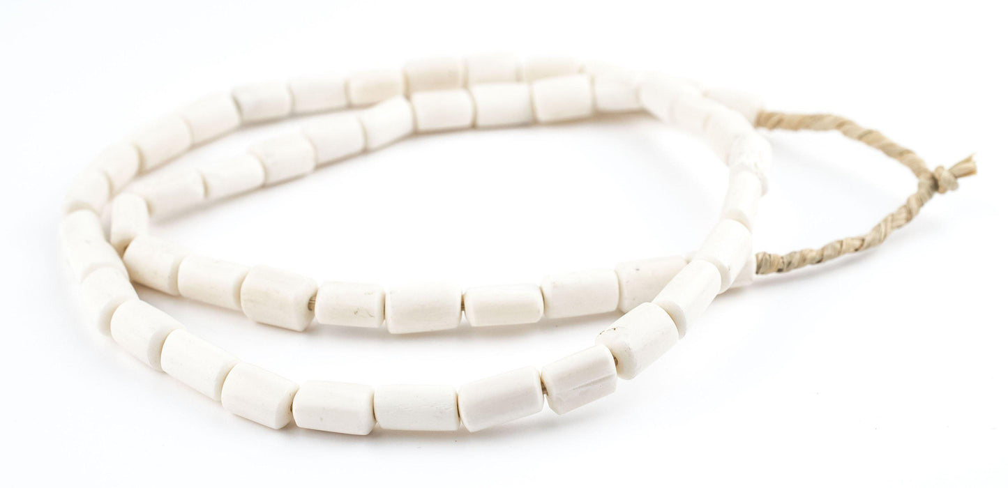 Admire this unusual strand of bone beads from Kenya. East African bone beads are handcrafted by artisans using recycled cow bone. Each bead is individually carved and polished, and is truly one of a kind.
