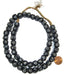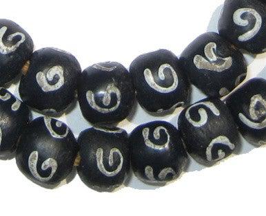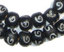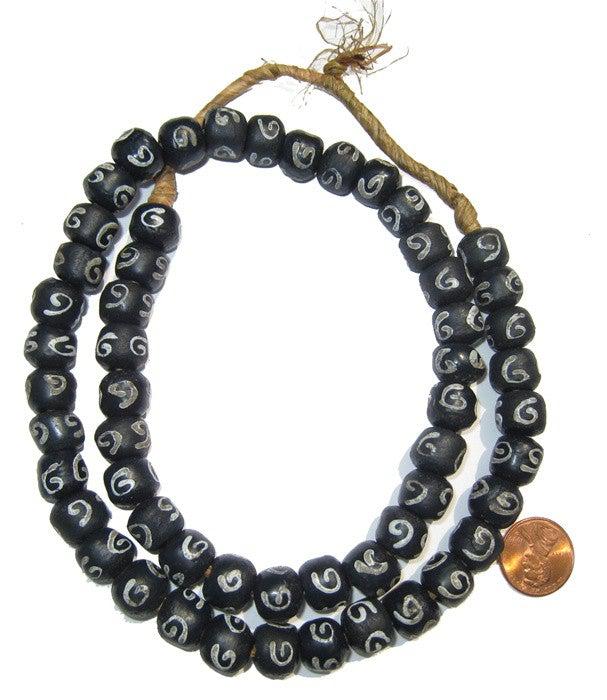 A beautiful strand of powder glass African beads, made by the people of Krobo Mountain ( Ghana , West Africa ) ,reproducing old Venetian FANCY trade beads. Made from bottles and other glass items that are turned into powder, then poured into molds in order to create this nice looking drum shaped beads. Decorations on the beads are made with a paste made of colored glass powder and water, which is applied using a thin wooden stalk. They are cooked a second time to fix the decor. The beads are handmade.
