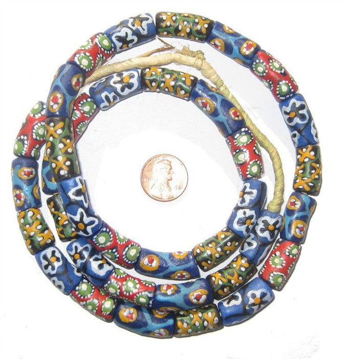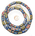 A beautiful strand of powder glass African beads, made by the people of Krobo Mountain ( Ghana , West Africa ) ,reproducing old Venetian FANCY trade beads. Made from bottles and other glass items that are turned into powder, then poured into molds in order to create this nice looking drum shaped beads. Decorations on the beads are made with a paste made of colored glass powder and water, which is applied using a thin wooden stalk. They are cooked a second time to fix the decor. The beads are handmade.