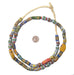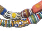 A beautiful strand of powder glass African beads, made by the people of Krobo Mountain ( Ghana , West Africa ) ,reproducing old Venetian FANCY trade beads. Made from bottles and other glass items that are turned into powder, then poured into molds in order to create this nice looking drum shaped beads. Decorations on the beads are made with a paste made of colored glass powder and water, which is applied using a thin wooden stalk. They are cooked a second time to fix the decor. The beads are handmade.