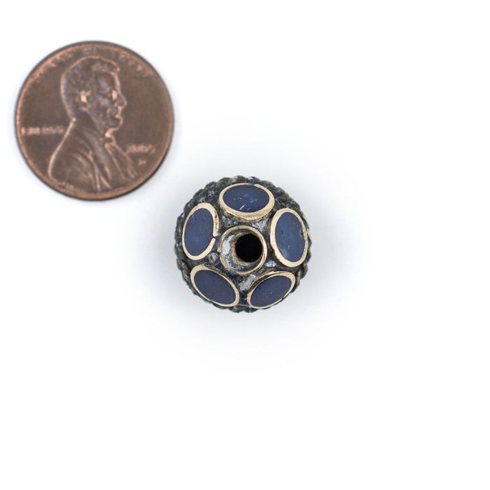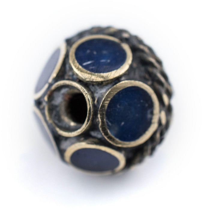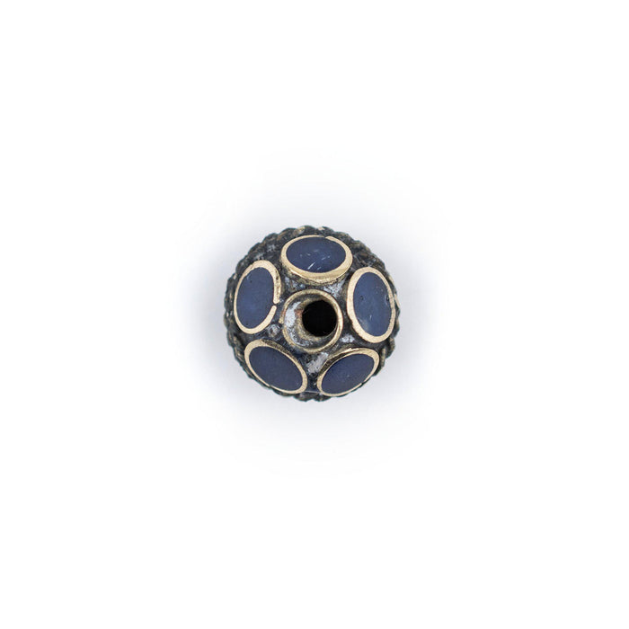 Lapis-Inlaid Afghan Tribal Silver Bead (16mm)