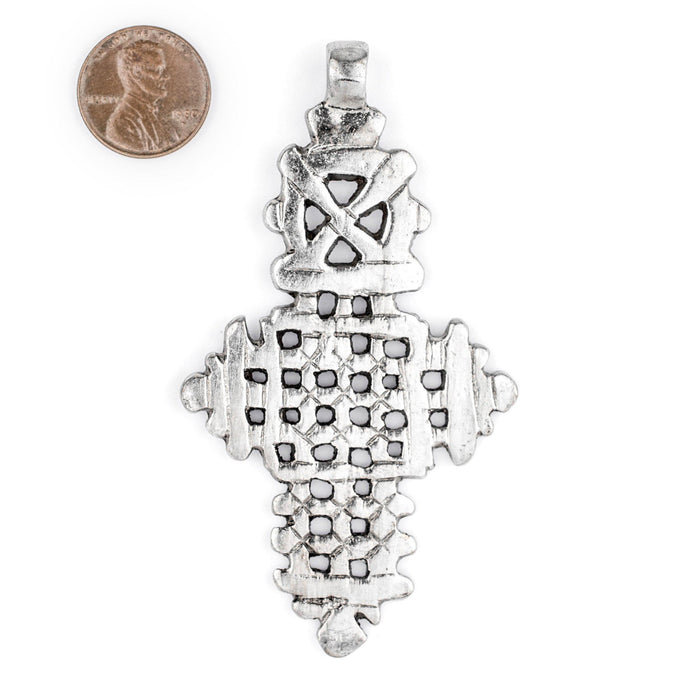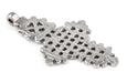Designed in Ethiopia, this Coptic Cross pendant is intricately crafted, showcasing exquisite artistry and cultural significance. The pendant can be worn as-is, simply by running a chain through it. The design on the back of the cross is similar to the design. This pendant measures approximately 88 x 48mm in size. Get yours today!