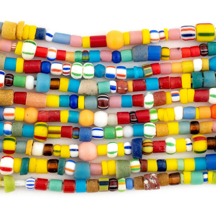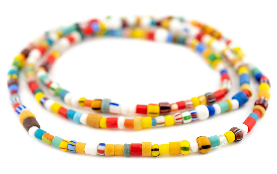 Christmas beads comprise of a special blend of choice beads created in former Czechoslovakia for use in Africa. Also known as "African love beads," each strand is 100% unique; no two strands are alike. Please take note: these beads are authentic vintage production, unlike modern replicas which are widely available in the market today. These fun beads can either be used for your own beaded creations, or worn as is. Traditionally, multiple strands are worn at once. Available in a variety of sizes and styles. Multiple strands pictured. Each strand sold individually. Get yours today!