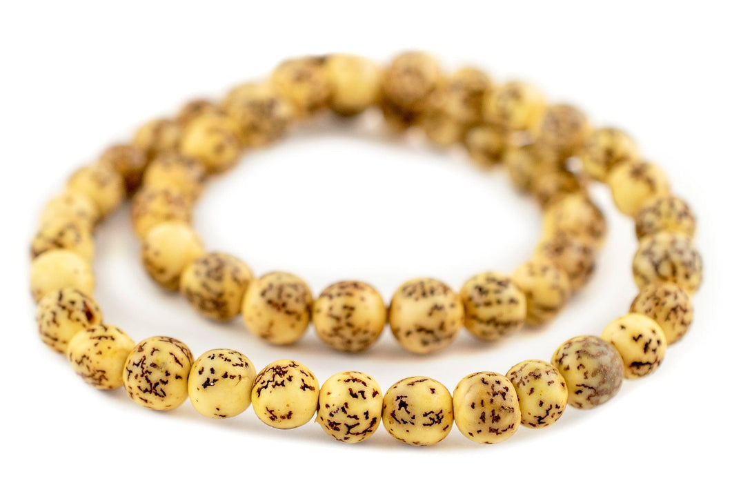 These striking beads are handmade using salvaged palm tree seeds. The slight variations in colors and shape of the beads will make them a fun addition to your beading project. Look carefully and you will see that each bead is unique. Each bead measures approximately 8 x 8mm, with a hole size of approximately 1mm. You will receive one strand measuring approximately 16". There are around 48 beads on each strand. Use them as spacers or accent beads. The rustic character of these beads is sure to add an authentic touch to your jewelry designs!