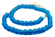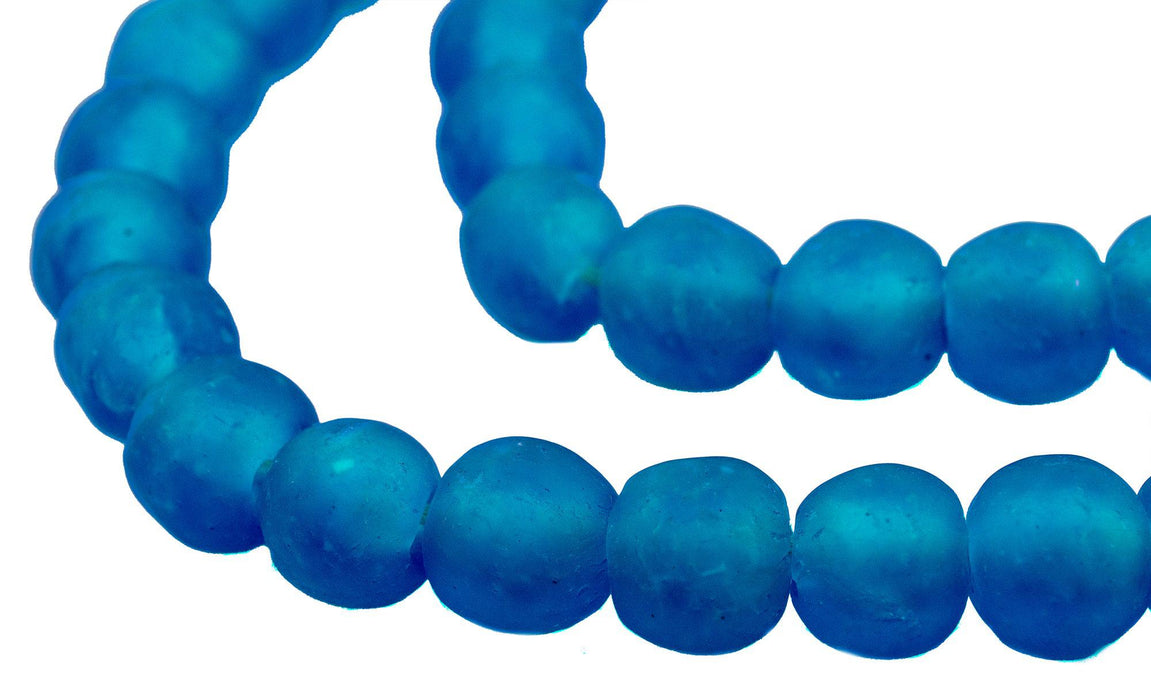 Take a closer look at this great strand of blue beads. Made from recycled glass by artisans in Ghana, West Africa these beads will enhance your creations with their distinctive color and eye-catching translucency. The glass itself is derived from a variety of recycled sources including old beverage and medicine bottles. The procedure for making the beads consists of several steps whereby powdered glass is poured into molds of clay and baked in a specialized oven. Each bead roughly measures 11-12 x 12-13mm with a hole size of about 3mm. You will receive one full strand measuring approximately 27" in length. Add these Light Azul Recycled Glass Beads to your collection to create pieces that are as thoughtful as they are stunning.