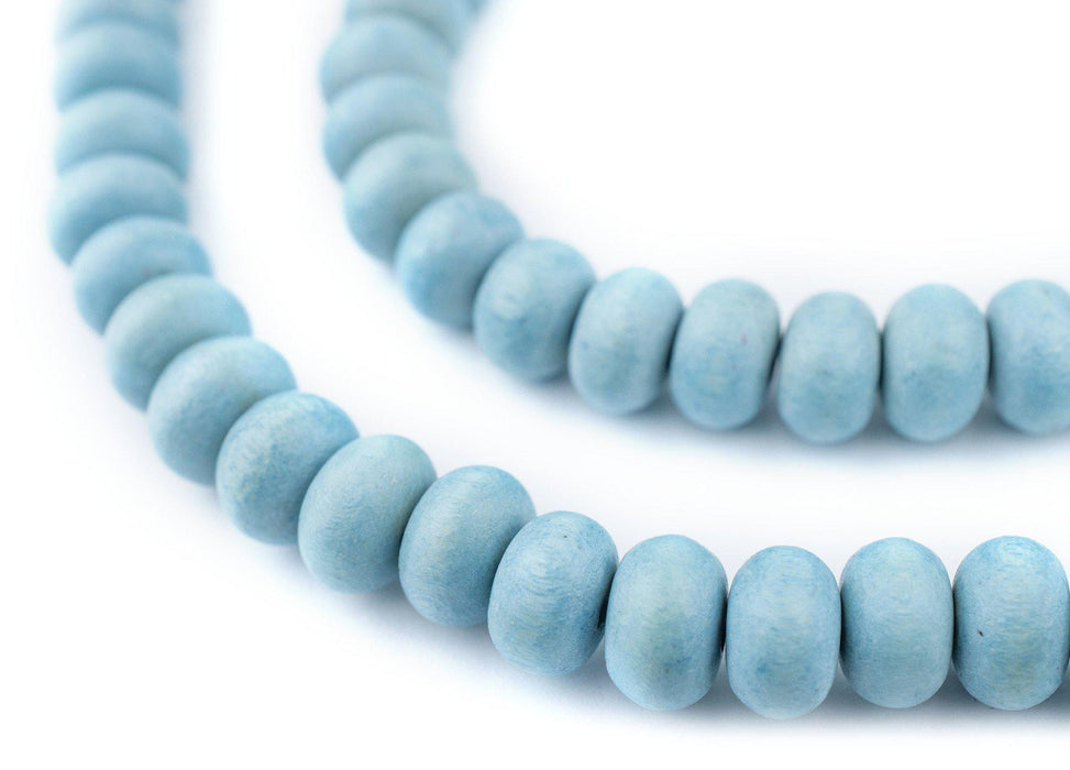 Light Blue Abacus Natural Wood Beads (8x12mm)