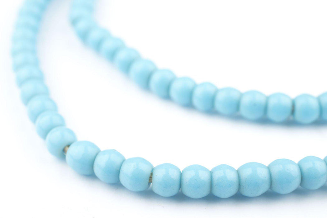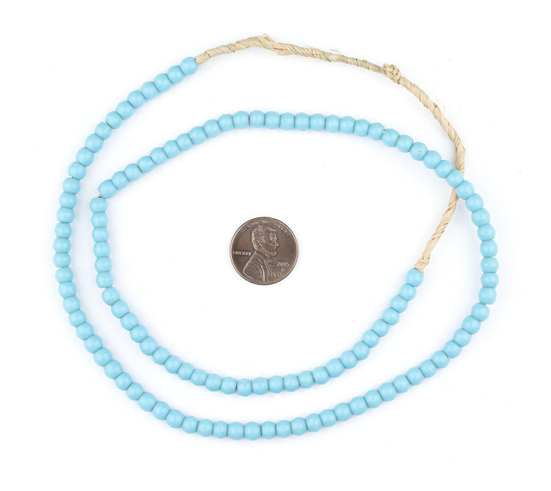 Take a look at these light blue glass baby padre beads from Nigeria. These little beads are great as spacers or to add character to your jewelry designs. Each bead measures approximately 5mm in diameter. Try them today!