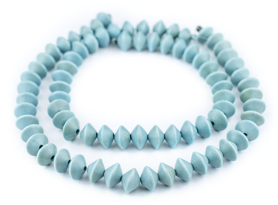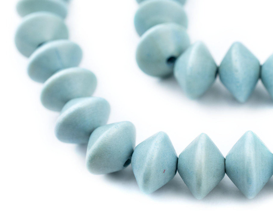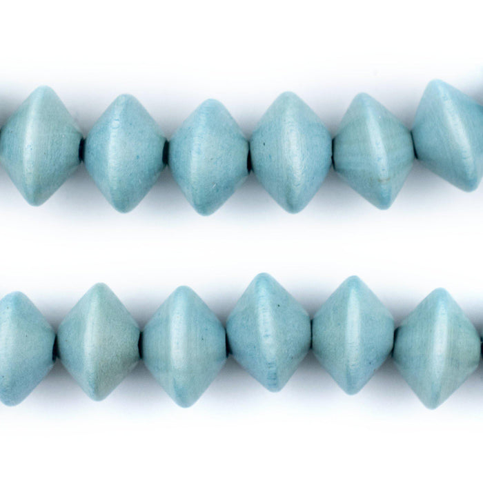 Light Blue Bicone Natural Wood Beads (10x15mm)